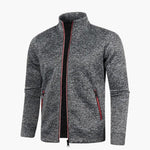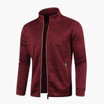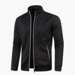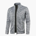 This men's jacket features a structured stand-up collar and a full front zipper closure. It includes two zipped side pockets for secure storage. Its long sleeves end with straight cuffs, and its straight hem offers a clean cut. Designed with a textured surface, it ensures a modern look.