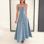 Pair it with sneakers for a relaxed look or dress it up with heels for a more polished ensemble. The Willow Blue Denim Midi Dress is perfect for sunny afternoons, weekend getaways, or casual brunches, offering both comfort and style in one.